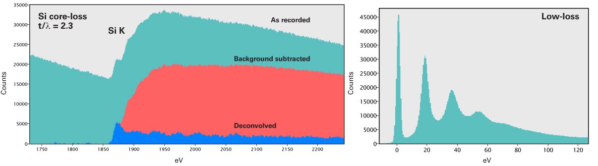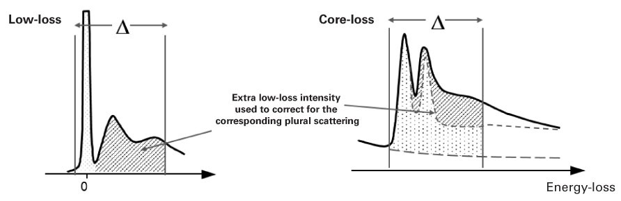 It may not always be possible (or desirable) to acquire the low-loss distribution along with every core-loss spectrum. In this case, relative quantification is still possible.