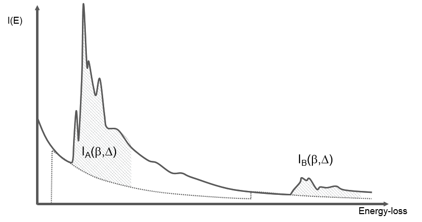 \(I_{low}( \beta,\Delta)\) = Low-loss intensity integrated up to energy loss \(\Delta\)